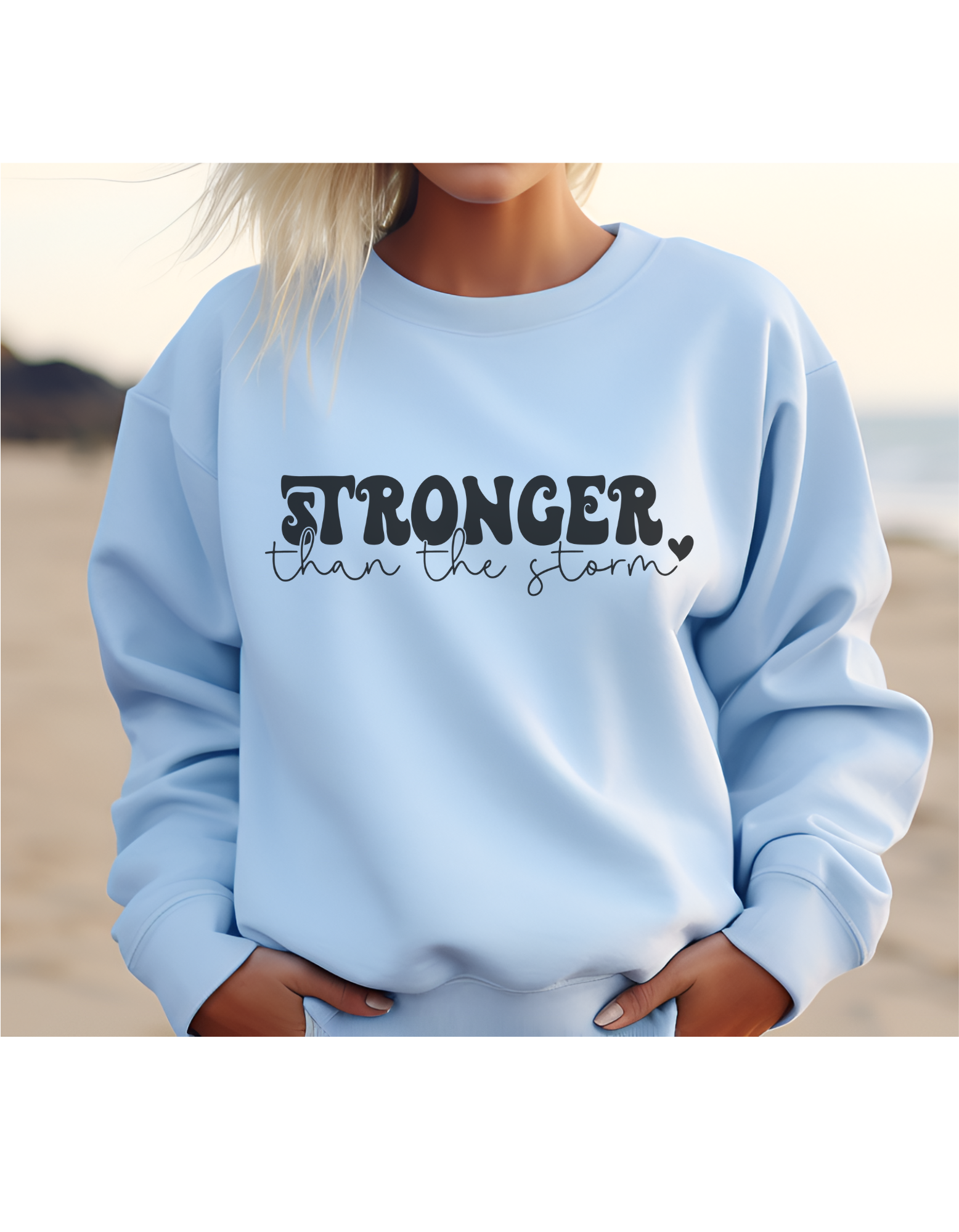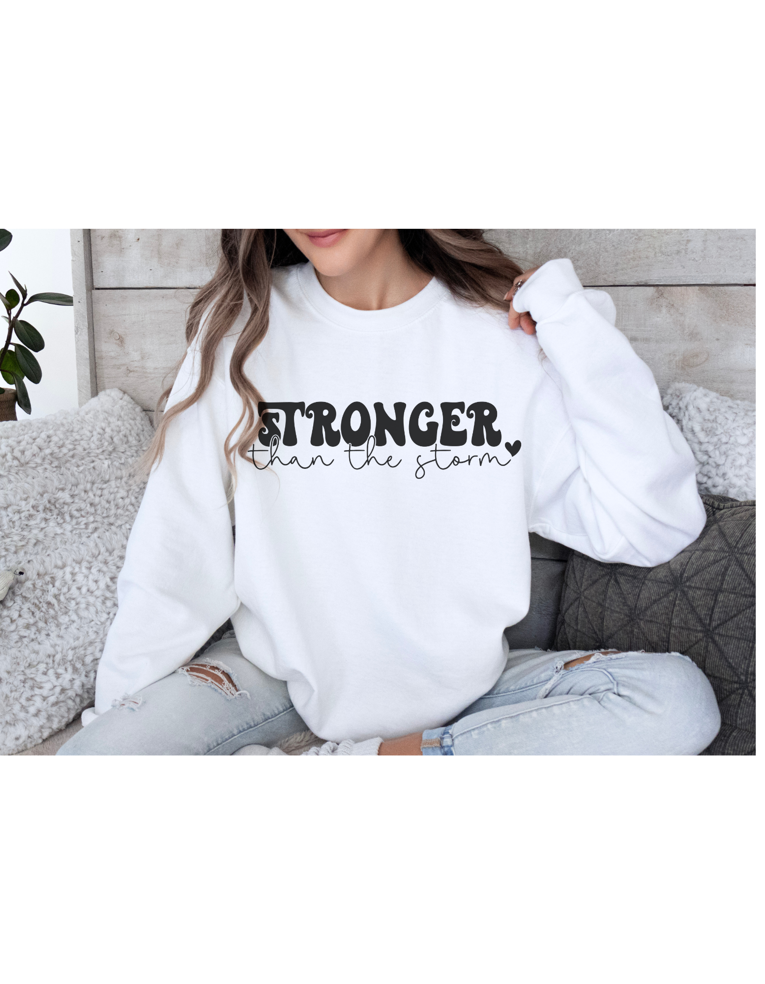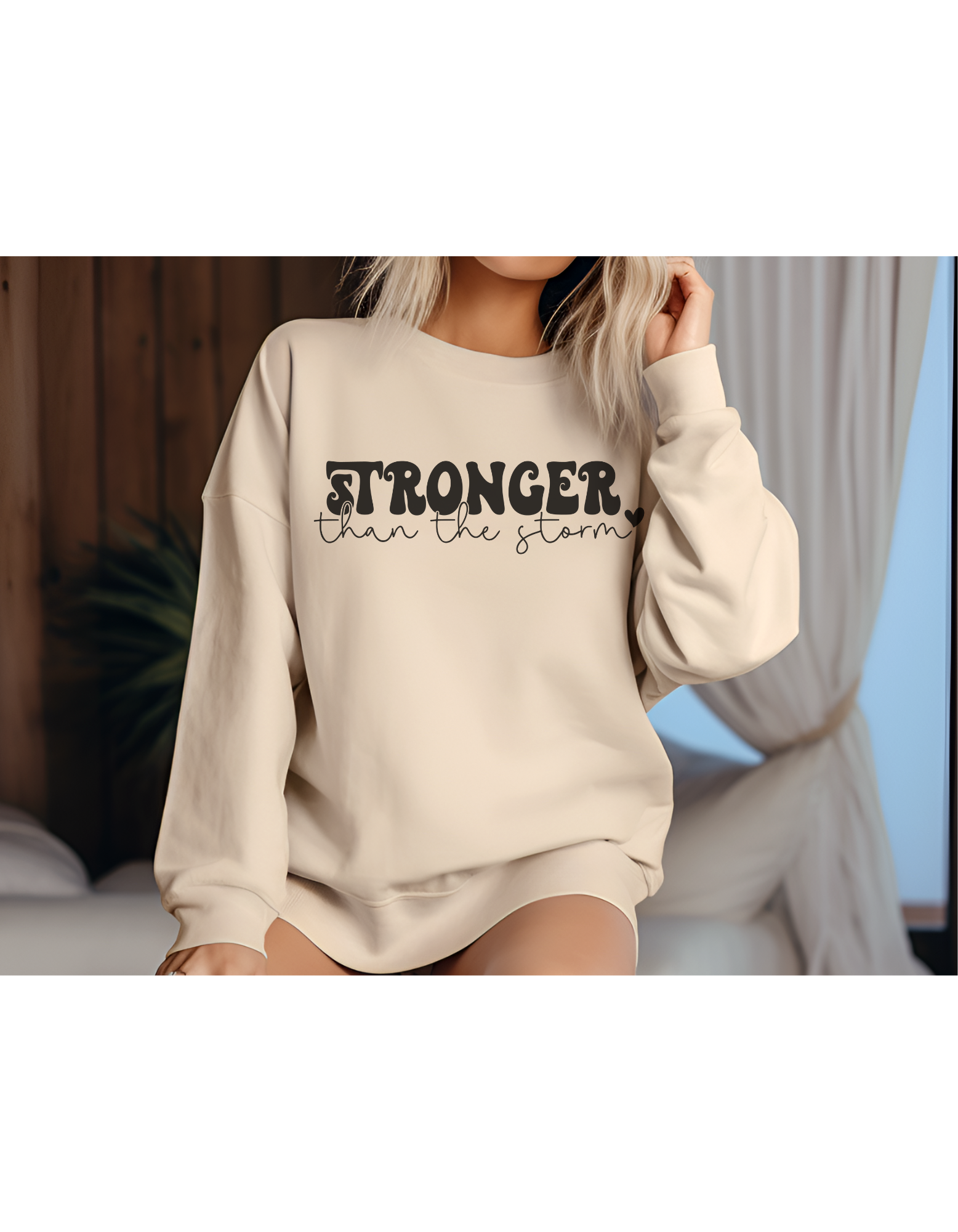 "Stronger Than the Storm" Sweatshirt – a symbol of resilience and strength that speaks volumes without saying a word. Life can throw its storms and challenges our way, but one thing remains true: We are stronger than any storm that comes our way.