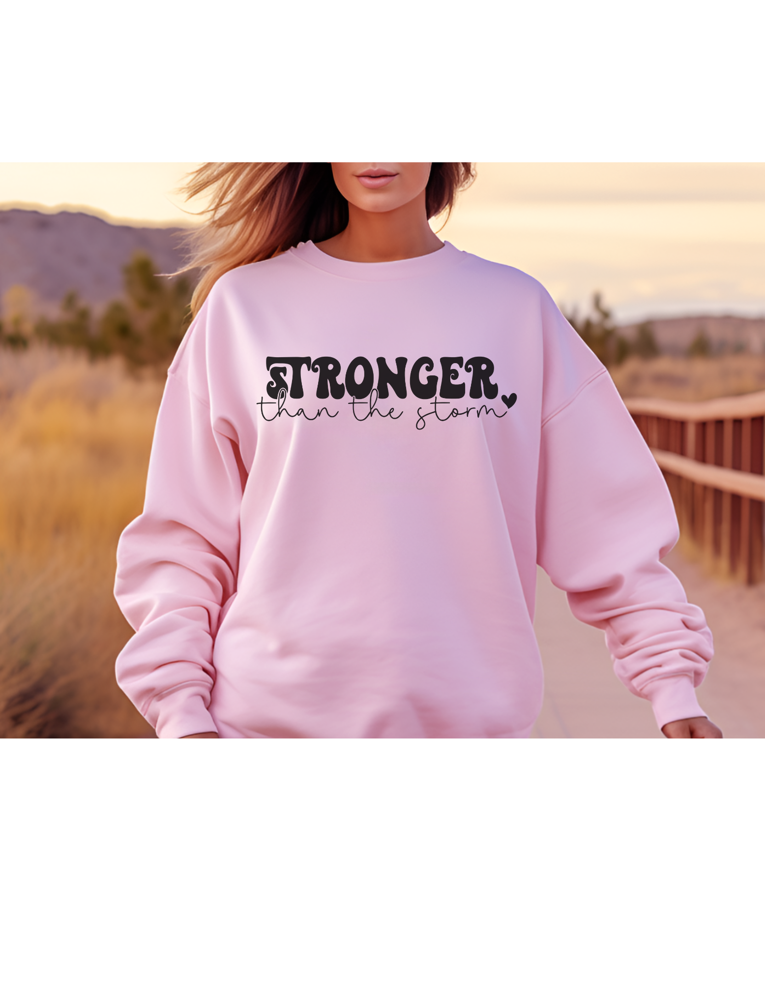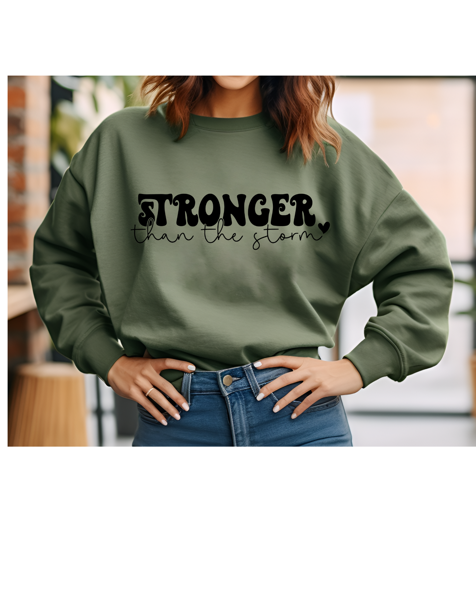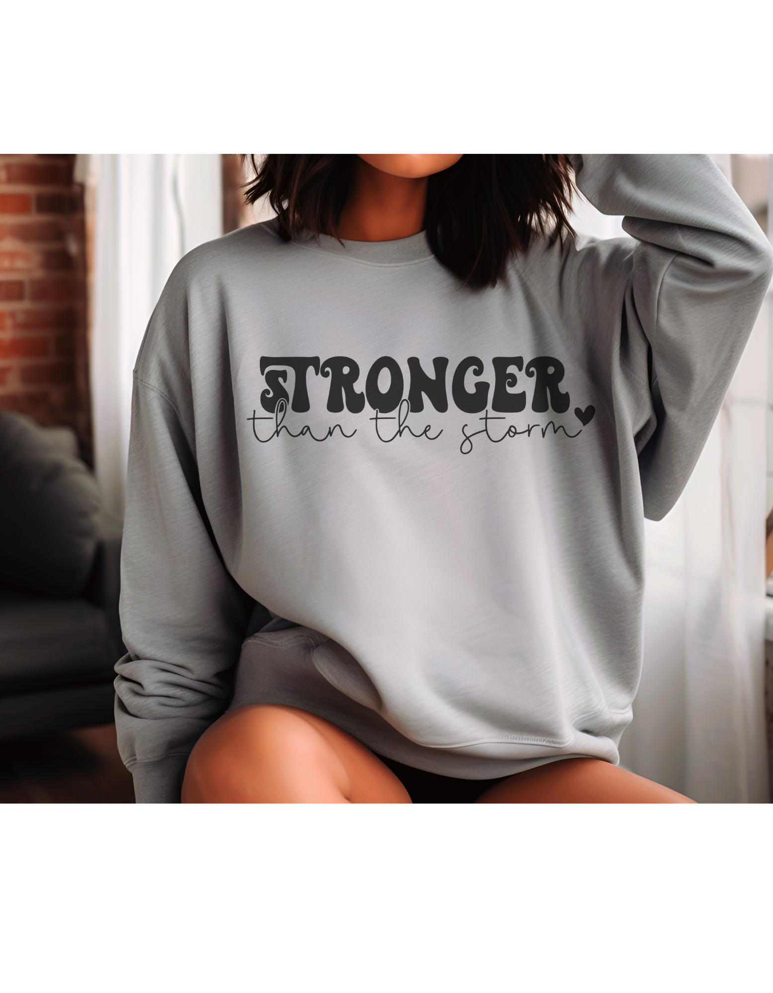 "Stronger Than the Storm" Sweatshirt – a symbol of resilience and strength that speaks volumes without saying a word. Life can throw its storms and challenges our way, but one thing remains true: We are stronger than any storm that comes our way.
